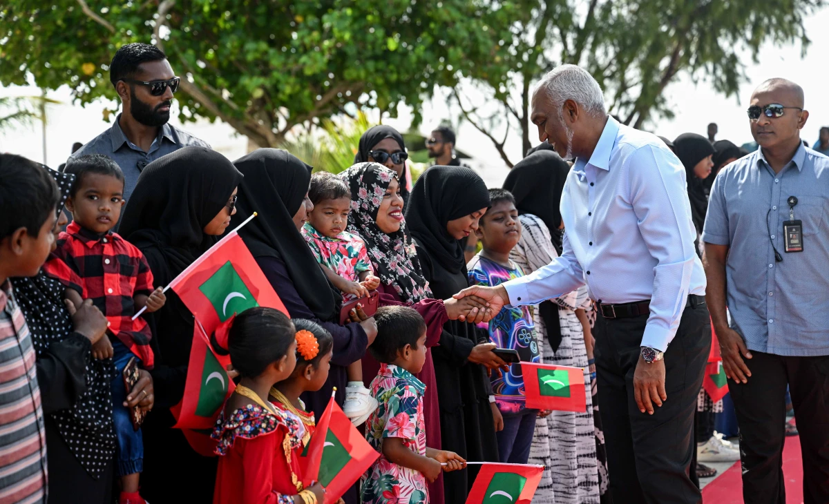 President Dr Mohamed Muizzu being greeted by Shaviyani Noomara residents -- Photo: President's Office