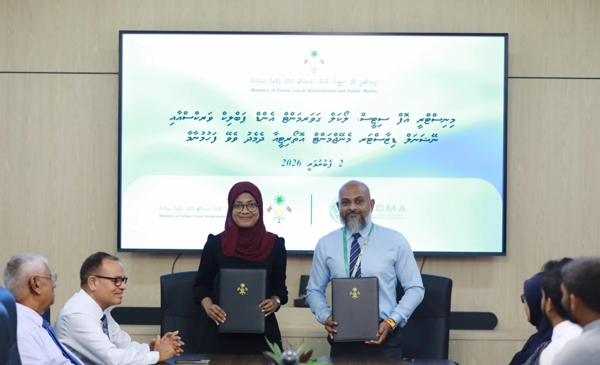 The agreement was signed at a ceremony held at the Ministry of Cities on Monday. Permanent Secretary Moomina Waheed signed on behalf of the Ministry, while NDMA Chief Executive Hisan Hassan signed on behalf of the Authority.