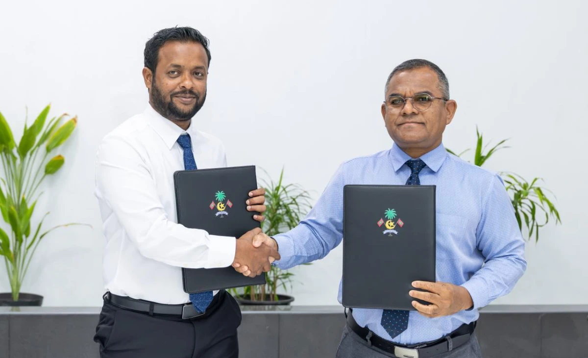 The agreement was signed between the Ministry of Construction, Housing and Infrastructure and MWSC, with Minister Dr Abdulla Muththalib signing on behalf of the Ministry and MWSC Managing Director Abdul Matheen Mohamed representing the company.