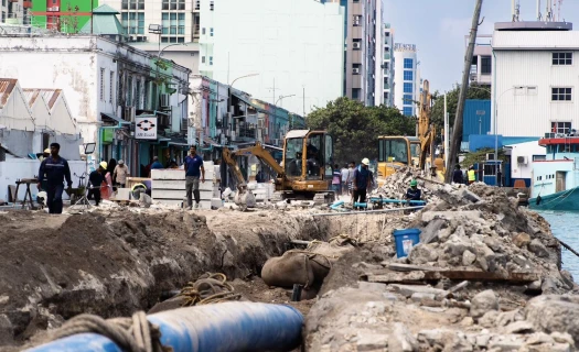 48 metres of sheet piling completed under Phase Two of Boduthakurufaanu Magu development