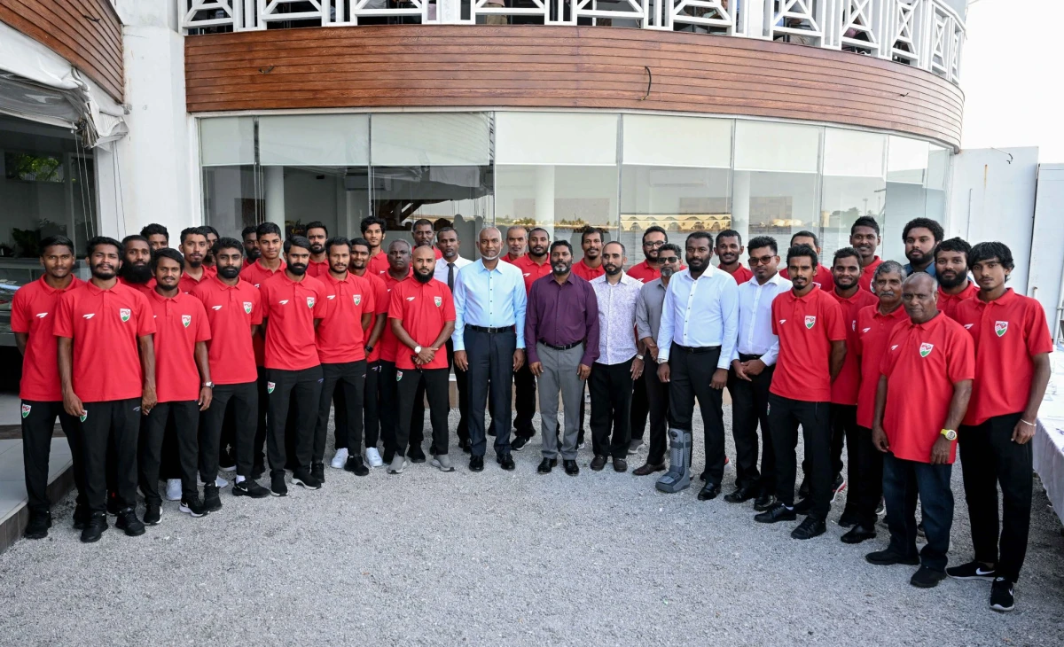 President Dr Muizzu also congratulated the national team on their recent victory in the South Asian Super Cup 2025, commending their dedication and urging them to continue bringing pride and honour to the country.