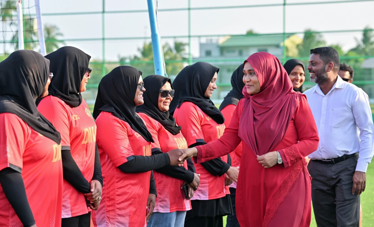 First Lady Sajidha Mohamed has inaugurated a newly developed volleyball court in Dhaalu Meedhoo, marking the completion of a community sports facility aimed at expanding access to recreational infrastructure on the island.