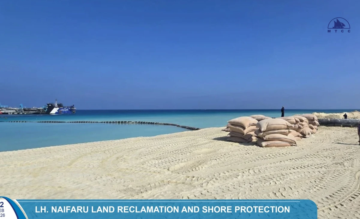 Land reclamation in Llhaviyani Naifaru has reached 54 per cent completion, according to the Maldives Transport and Contracting Company (MTCC). The project, which commenced in October 2025, involves the reclamation of 44.8 hectares of land in efforts to address housing needs and support urban development on the island.