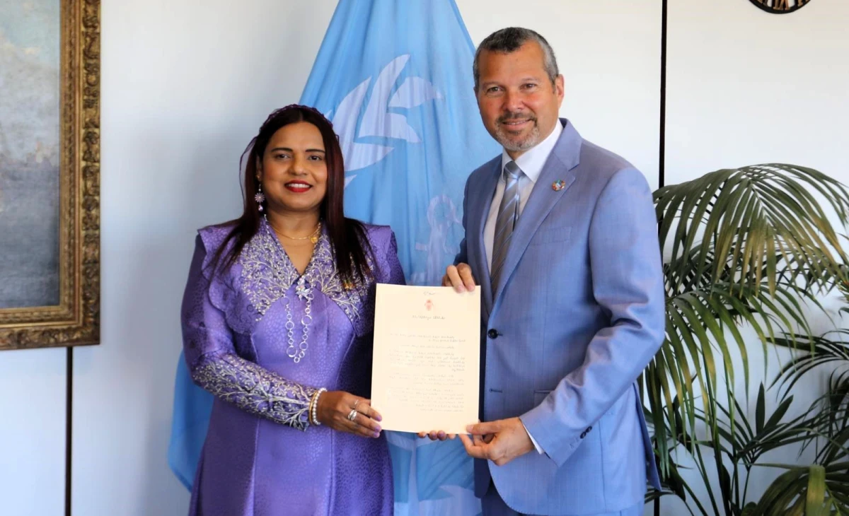 Minister of Foreign Affairs Iruthisham Adam presenting credentials to IMO Secretary General in 2024 --- Photo: Ministry of Foreign Affairs